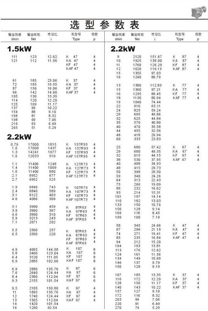 選型參數(shù)表1.5kW(續(xù))和2.2kW
