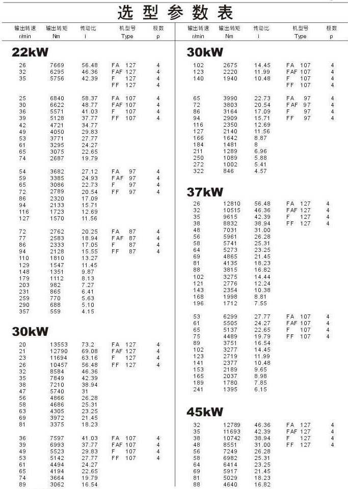選型參數表22kW (續(xù)),30kW ,37kW ,45kW